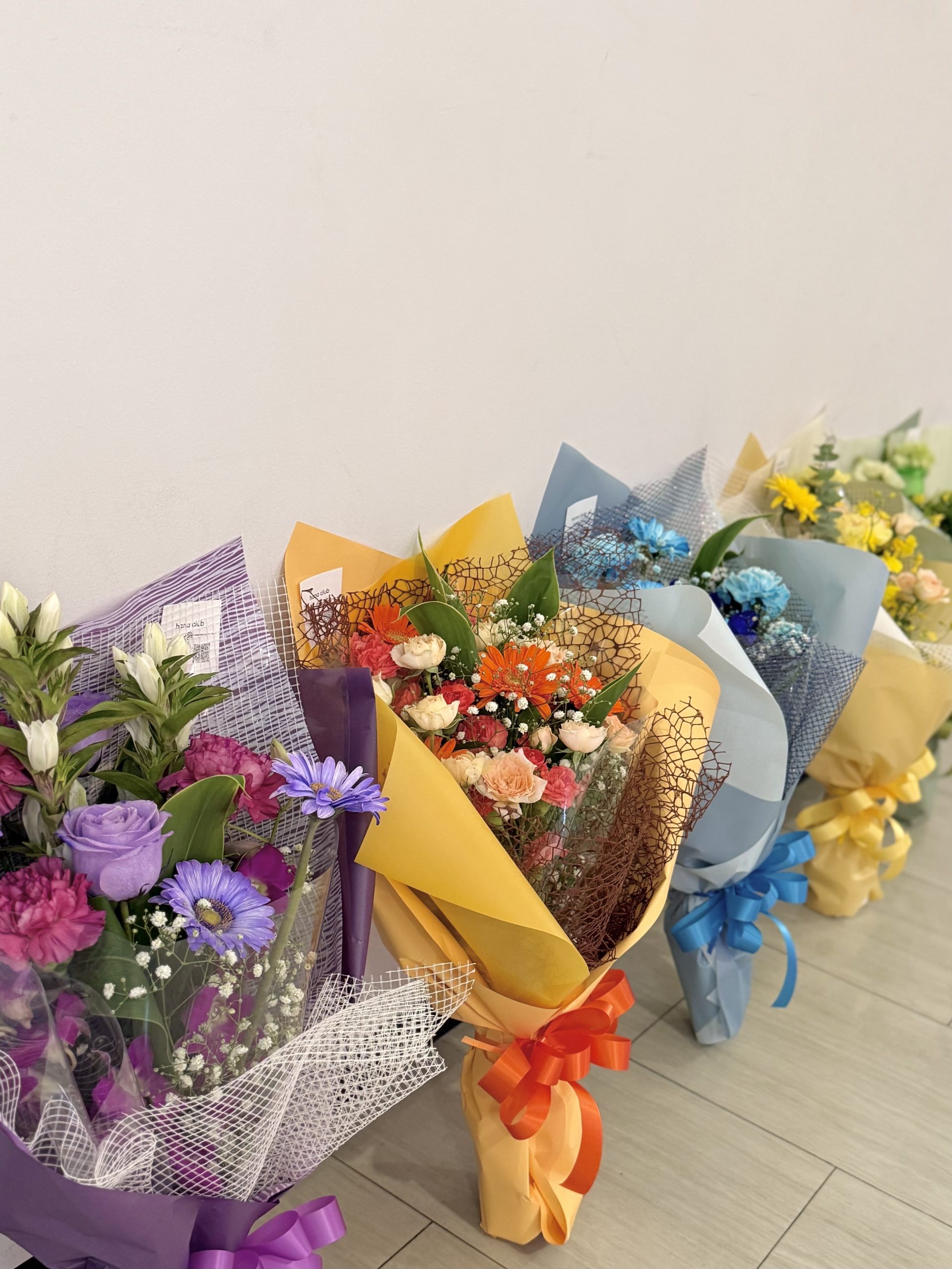 最近、全部色を変えた花束のご注文が増えています!並べるとゴレンジャーみたいでかわいい🦸🦸♀️🦸♂️🦸♀️🦸✨花倶楽部では染め花を作っていますので、ブルー系(青や水色)、パープル系(紫やうす紫)、レインボーカラーなどカラーバリエーション豊富にご準備できます🕺
