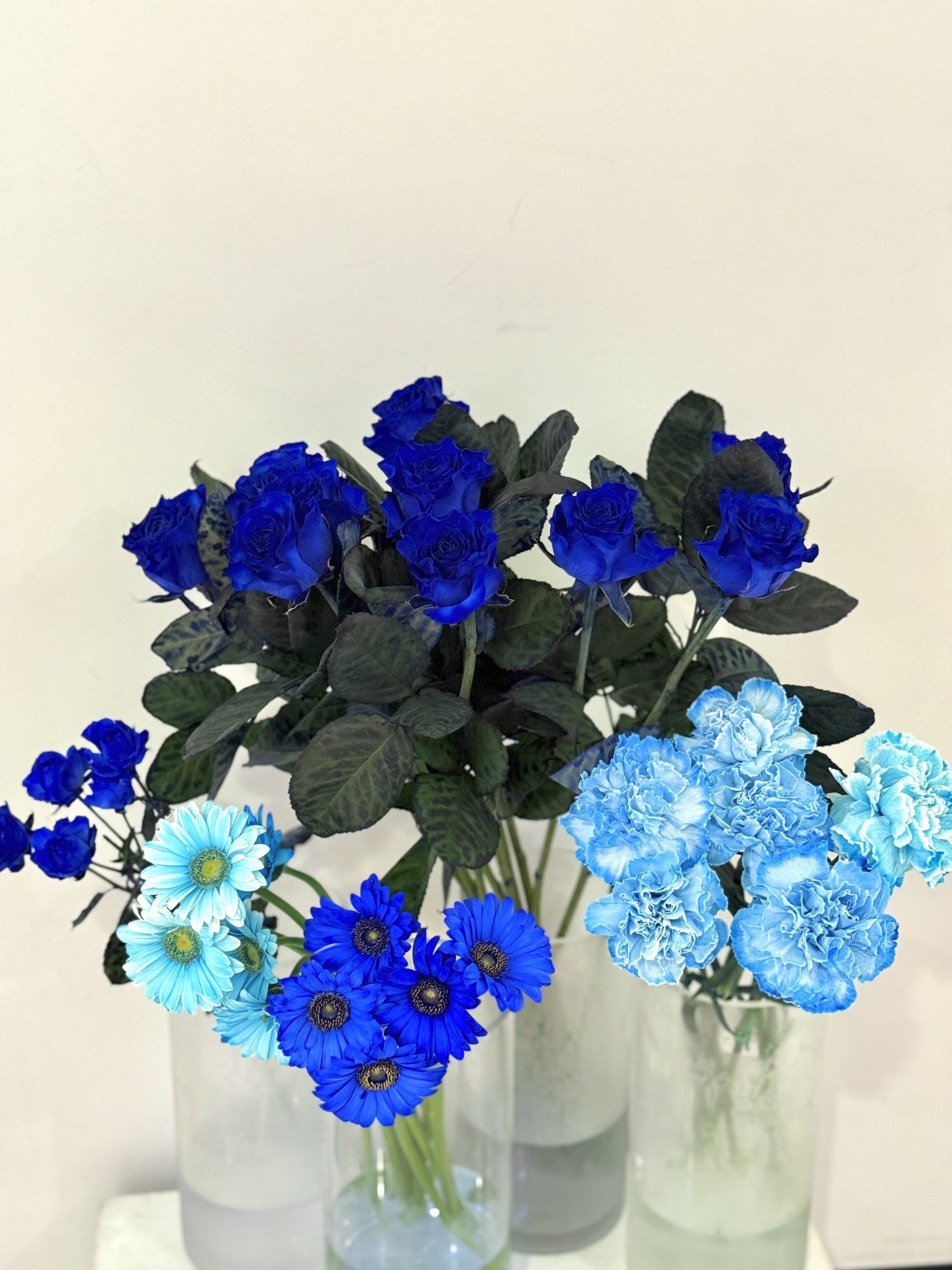 自然界にはない青の花を、フラワー装飾技能士1級のスタッフたちが一輪ずつ丁寧に染め上げています🎨✨長年の経験から生まれる、他にはない美しい発色と仕上がりに自信あり!