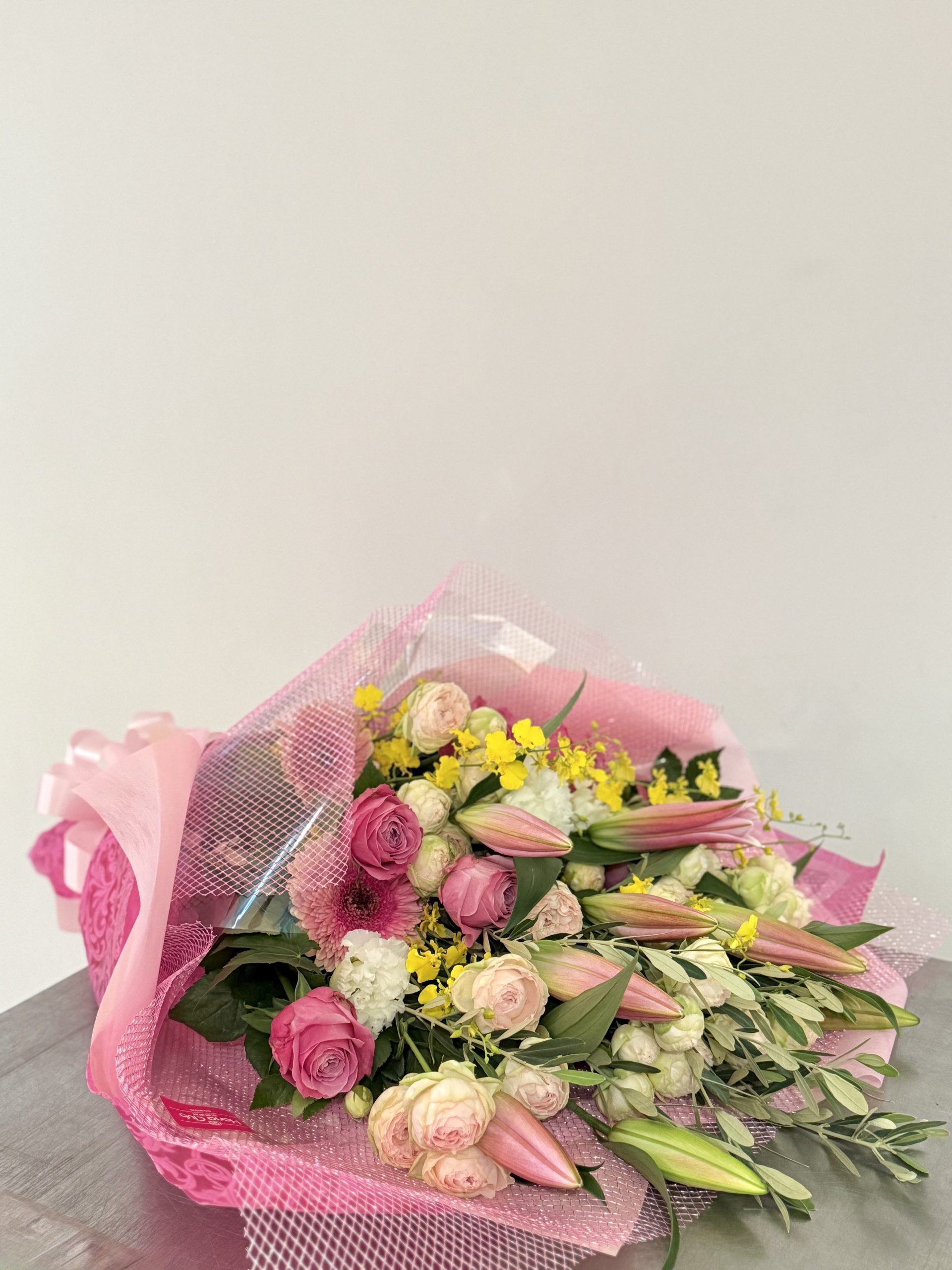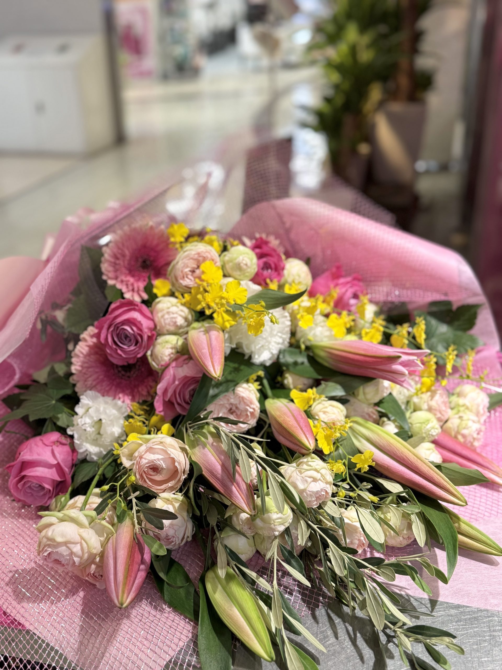お誕生日・各種お祝いやプレゼント、お悔やみ、お供えなどのお花の贈り物。ご用途に応じたフラワーギフトを、当店のスタッフが心を込めておつくりします。福岡県福岡市博多区へのお花のお届けなら当店にお任せください。